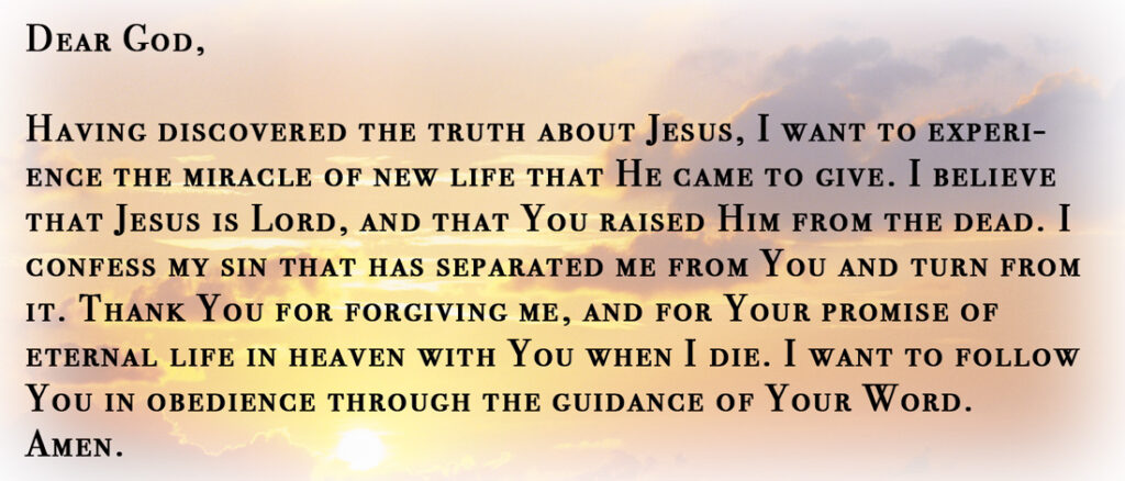 If you would like more information, we encourage you to contact us as well. We offer a number of publications and events that may help you find answers to life’s most important questions.
